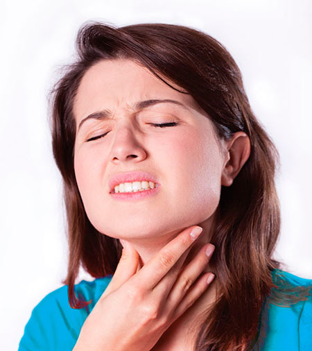 Эта патология вызывает значительный дискомфорт – она не только повреждает анатомию глотки, но и доставляет пациенту мучительные боли в области шеи, которые усиливаются при глотании (в результате чего пострадавший может отказаться от еды), затрудняет процесс глотания и искажает восприятие вкуса, приводит к увеличенному слюноотделению и кашлю, а также вызывает общее недомогание, связанное с интоксикацией.
